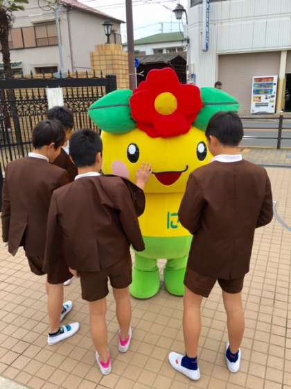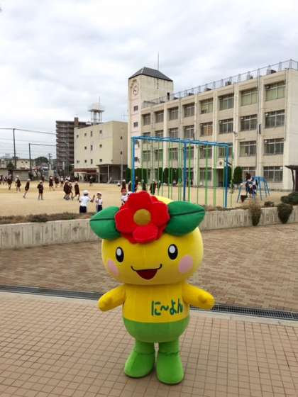 今朝、にーよんが大和田小学校にやって来ました。西淀川区の防災対策について区役所広報担当が、本校の備蓄倉庫や3階以上避難所としての施設を取材されました。