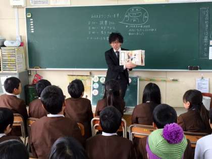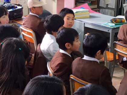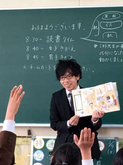 4年2組に、2年生の三好先生が読み聞かせをしてくださいました。