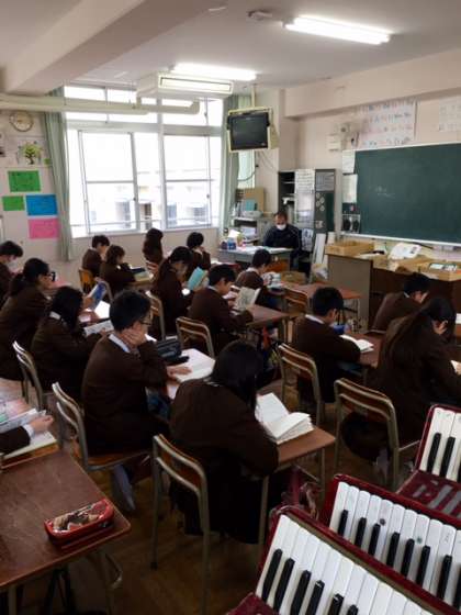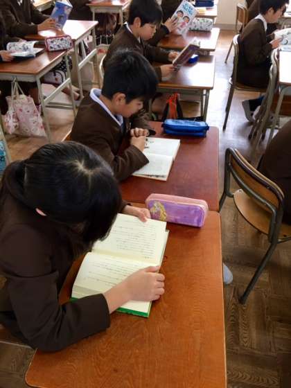 5年生の様子です。1組、2組は自読をしています。