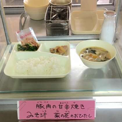 昨日の雨があがって、少し寒さが戻ってきました。今日の給食は春の訪れを感じます。中学校はいよいよ明日は卒業式、大和田小学校も、あと1週間で6年生を送り出します。