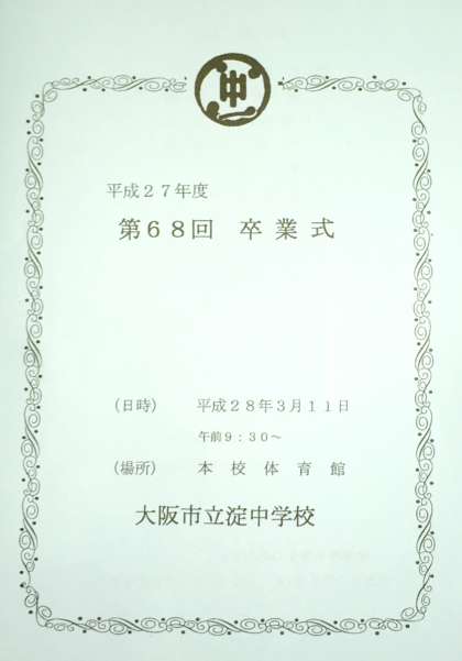 淀中学校 第68回 卒業式