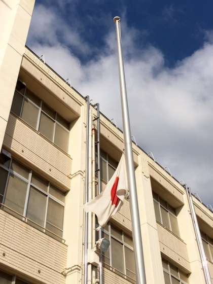 本校では、震災発生の時刻に合わせ、弔意を込めて放送集会を行い、黙祷を捧げます。