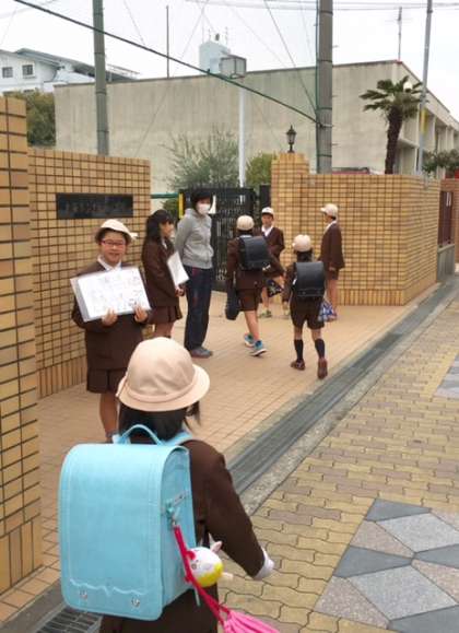 今朝も、運営委員会のみなさんが「あいさつ運動」をしてくれています。