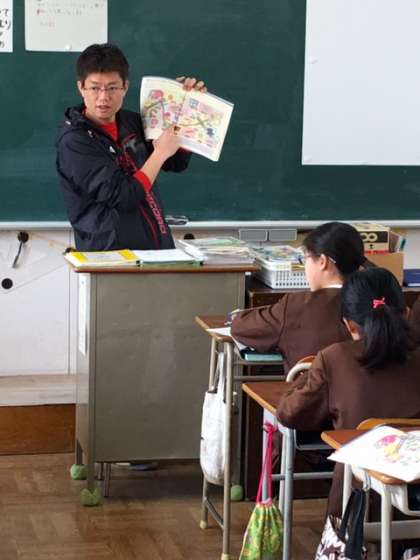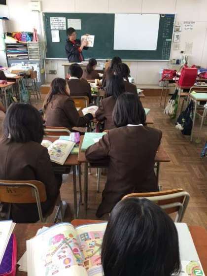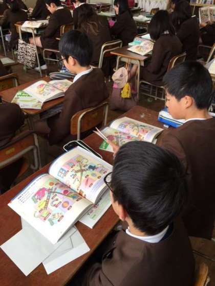 6年2組が英語の授業をしています。続きは中学校で授業を受けます。がんばりました。