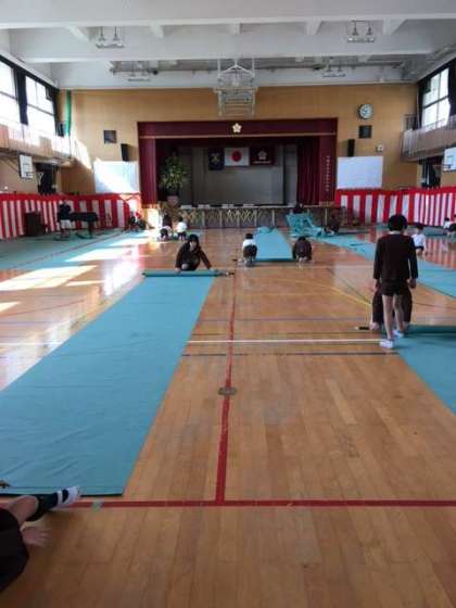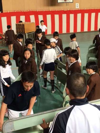 今朝1時間目から、5年生の子どもたちが手伝ってくれて卒業式の後片付けをしてくれました。
