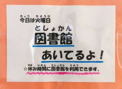 今日は、火曜日 図書館司書の吉成先生が来られています。