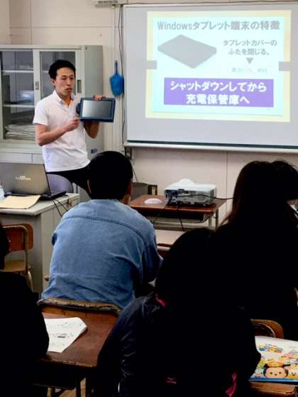 大阪市のICTモデル校に指定された本校は、4月1日からICT校内研修会を開催しました。