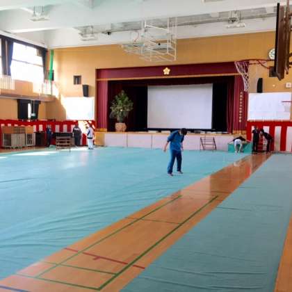 さて、大和田小学校では、入学式の会場設営が始まりました。講堂玄関のソメイヨシノも満開の時を迎えました。