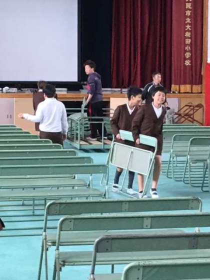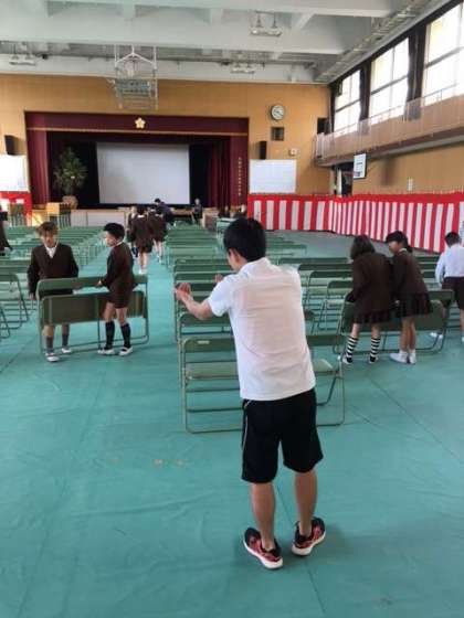 講堂の準備、校内の掃除、教室の整備は新6年生が担当してくれました。