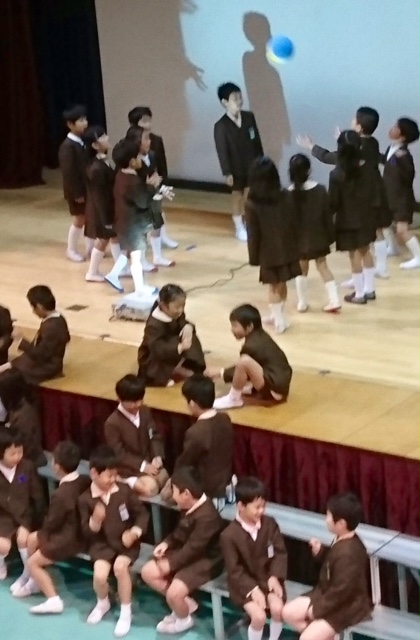 2年生は、大きな声で紹介してくれただけでなく、歌を歌ったり、実際に竹馬や一輪車、縄跳びを実演したりして楽しく学校紹介をしてくれました。