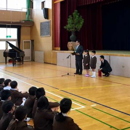 新学期に、新たに2年生の児童2名が加わり409名の児童とともに始まりました。