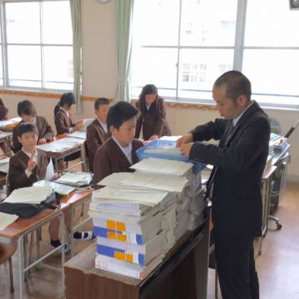 新しい教科書も給付しました。学年・クラス・名前を書いて、大切に使ってください。