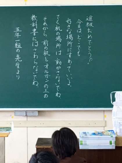 始業式を終えて、各教室で新しい担任の先生と学級活動です。