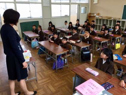始業式を終えて、各教室で新しい担任の先生と学級活動です。