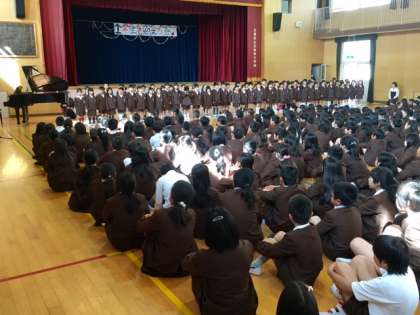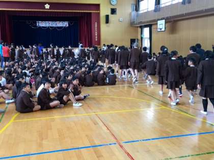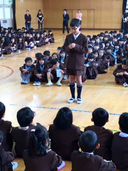 1年生の入場が終わり、児童代表のお祝いの言葉で会が始まりました。
