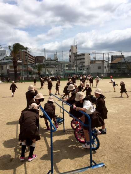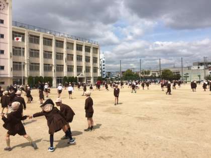 初めての20分休憩で子どもたちは、運動場に出て思いっきり身体を動かしました。