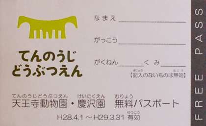 今年も大阪市より「天王寺動物園・天王寺公園無料パスポート」をいただきましたので、本日パスポートとお手紙を配付しました。