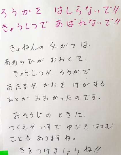 ご家庭でも、ご指導お願いします。