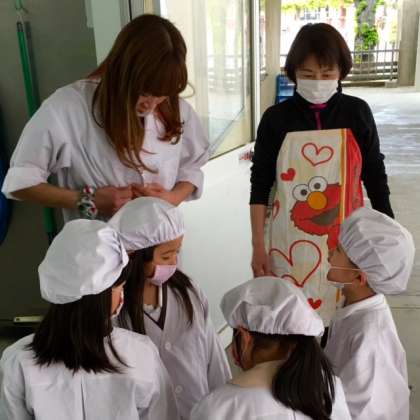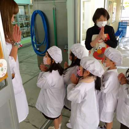 1年1組が給食当番をはじめました。