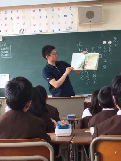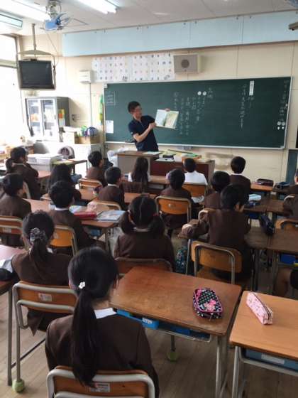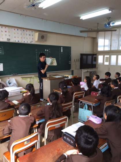 3年1組では、担任の田中先生が読み聞かせをしてくれています。
