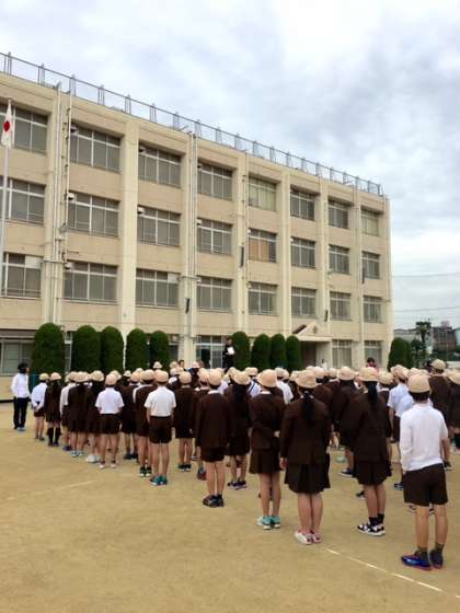 月曜日は児童朝会です。5年生は遠足ですが、1年生から6年まで運動場で児童朝会を行いました。