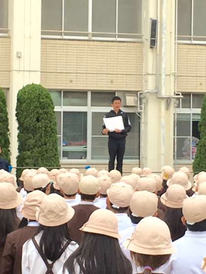 続いて生活指導部長の田中先生から、生活の注意を受けました。