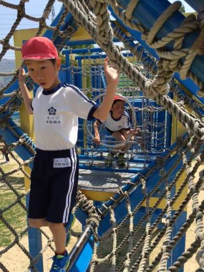 タブレットでの撮影を終えて、次はアスレチックで遊んでいます。日頃ないアスレチックに、大喜びです。