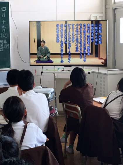 6年1組では、ICT(大画面テレビ)を活用しています。国語科の授業ですが、一番後ろの児童も視聴覚コンテンツが良く見えます。