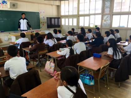 5年1組では、フォニックスの時間に担任の大西先生が英語のフレーズを教えてくださっています。子どもたちの知っている単語を使って、とてもよく英語に取り組んでいました。