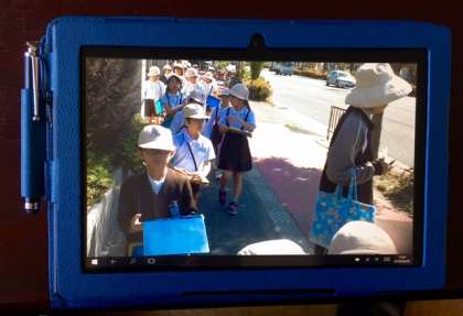 3年生が、校区探検から帰ってきてタブレットの写真を見せてくれました。