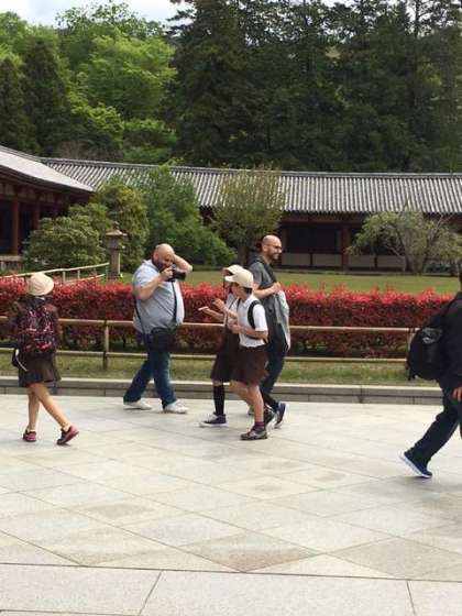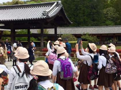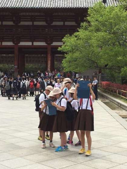 タブレットを使っての調べ学習だけでなく、外国から来られた観光客の方と英語で国際交流をしている児童もいます。