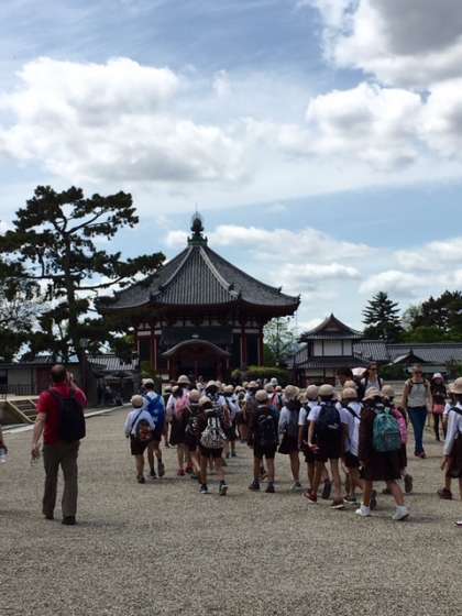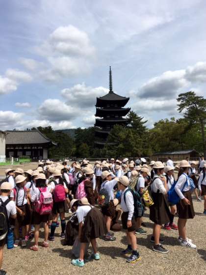 興福寺に着きました。越智先生の注意を聞いて再びタブレットタイムです。