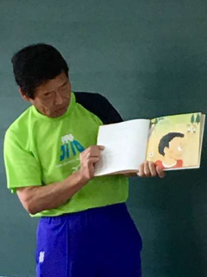 5年1組は、担任の大西先生が読み聞かせをしてくださっています。