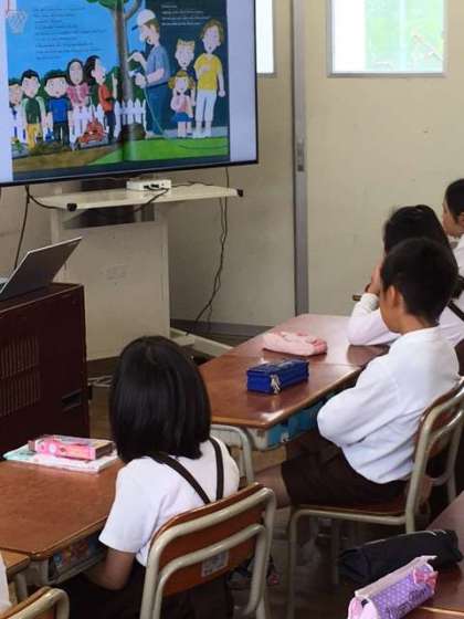 4年1組は、ICT機器を活用しての読み聞かせです。