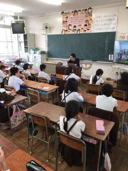 担任の石倉先生が英語の絵本を読んでくださいました。