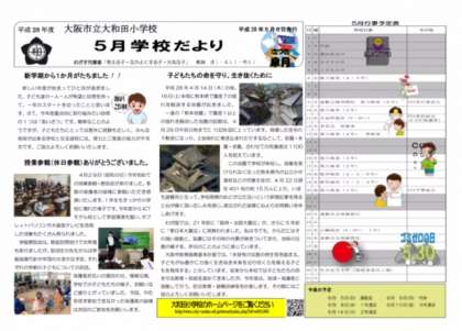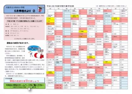 今月の学校だよりでは第二面に、年間行事計画を掲載しています。特に、土曜日や日曜日の行事につきましてはご注意ください。