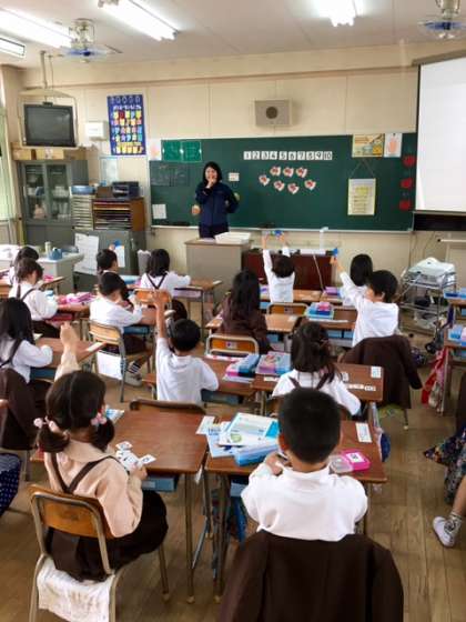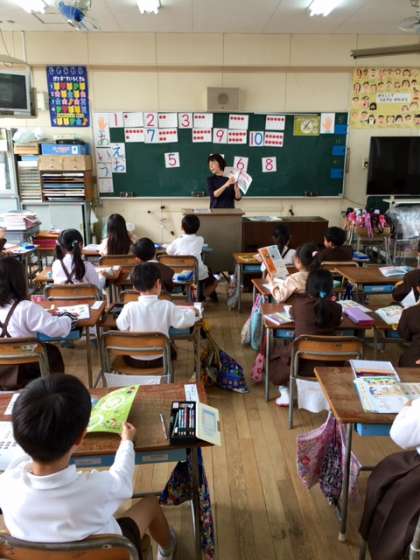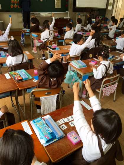 1年生が算数を勉強しています。1組も2組も活気があります。