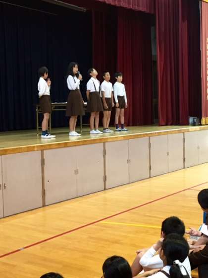 今朝は、運営委員会の皆さんが「三択クイズ」をして楽しい集会を開いてくれています。
