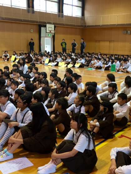 今年はすべての児童が「赤」「青」「黄」「緑」の、4つのたて割り班(6年生〜1年生の混合班)に分かれて絆を結んで活動しています。