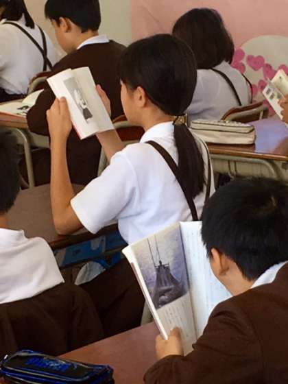 6年3組は、自読をしています。ずいぶん落ち着いて読書できています。