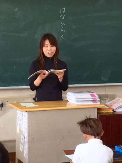 3年2組は、担任の依田先生が、詩の読み聞かせをしてくださっています。