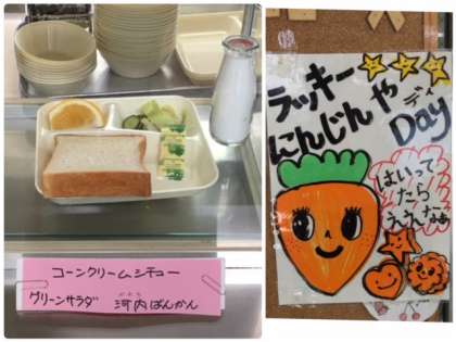 給食調理員さん、今週も美味しい給食を作ってくださりありがとうございました。来週も楽しみにしています。