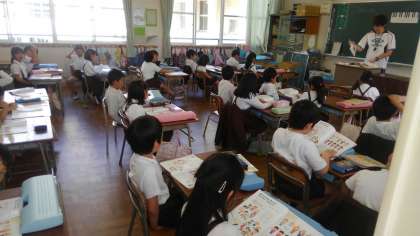 5時間目の学習は、1組は音楽でした。担任の先生と楽しく歌っていました。2組はICT機器を使いながら、本の読み聞かせを担任の先生がしていました。お話の世界に子どもたちは引き込まれいて、とても楽しそうにしていました。