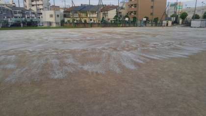昨日午後、運動場のにがりまきを終えました。来週からは運動場のコンディションも良くなり、運動会もバッチリです。