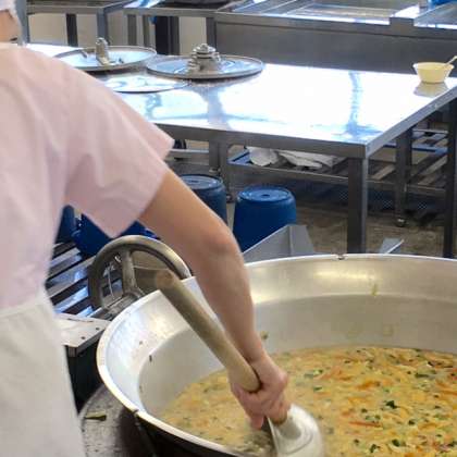 4時間目になると、給食室からとてもいい匂いがしてきます。もうすぐ給食です!