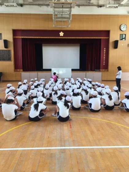 6年生が講堂で、ダンスの創作をしています。運動会をお楽しみに。