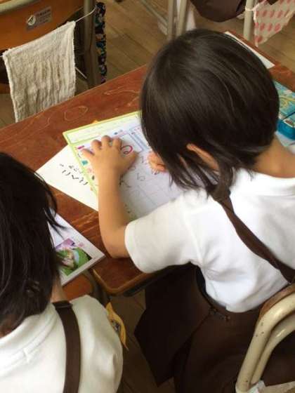 1年2組も国語でひらがなを勉強しています。暑いけどがんばろう。