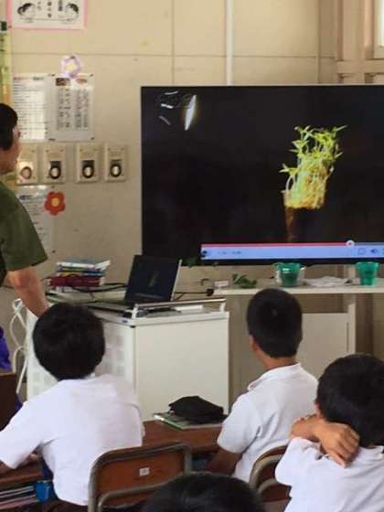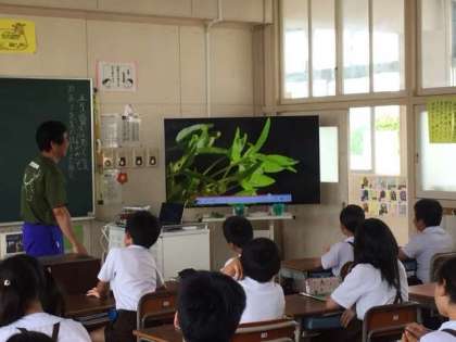 5年1組は理科の授業です。大っきなディスプレイでとても良くわかります。