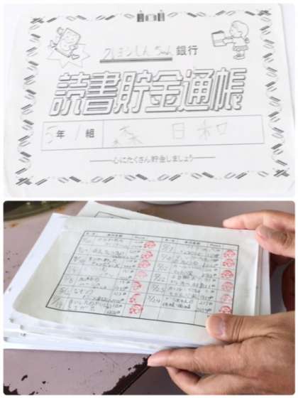 5年生は、読書活動推進のために「読書貯金通帳」を作っています。子どもたちそれぞれが読んだ本のページ数を貯めています。