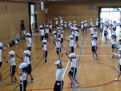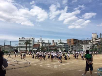 5時間目は運動会団体演技の練習です。4色のチームに分かれて練習しています。